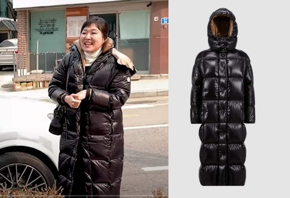 대담한 블록이 돋보이는 롱패딩. 베이지색 안감처리가 특징인 이 패딩은 이번 대치맘 패션에서 가장 주목받은 아이템입니다.
